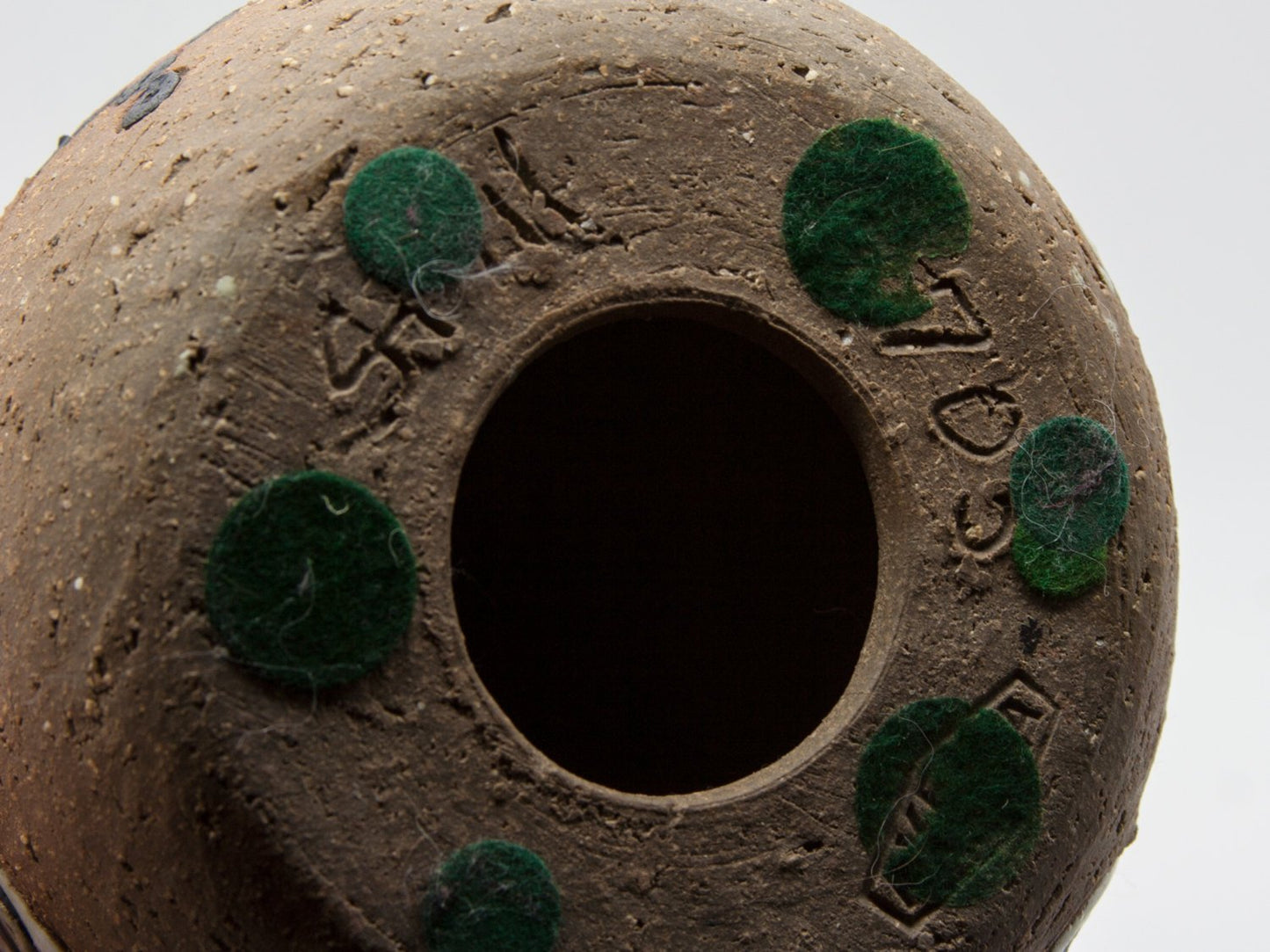 An amazing Mette Løkke Stiil table lamp, designed for Axella, with organic circular decoration in black and white glaze, made in Denmark. The lamp is marked Stiil, as well as '705' and 'Axella'.