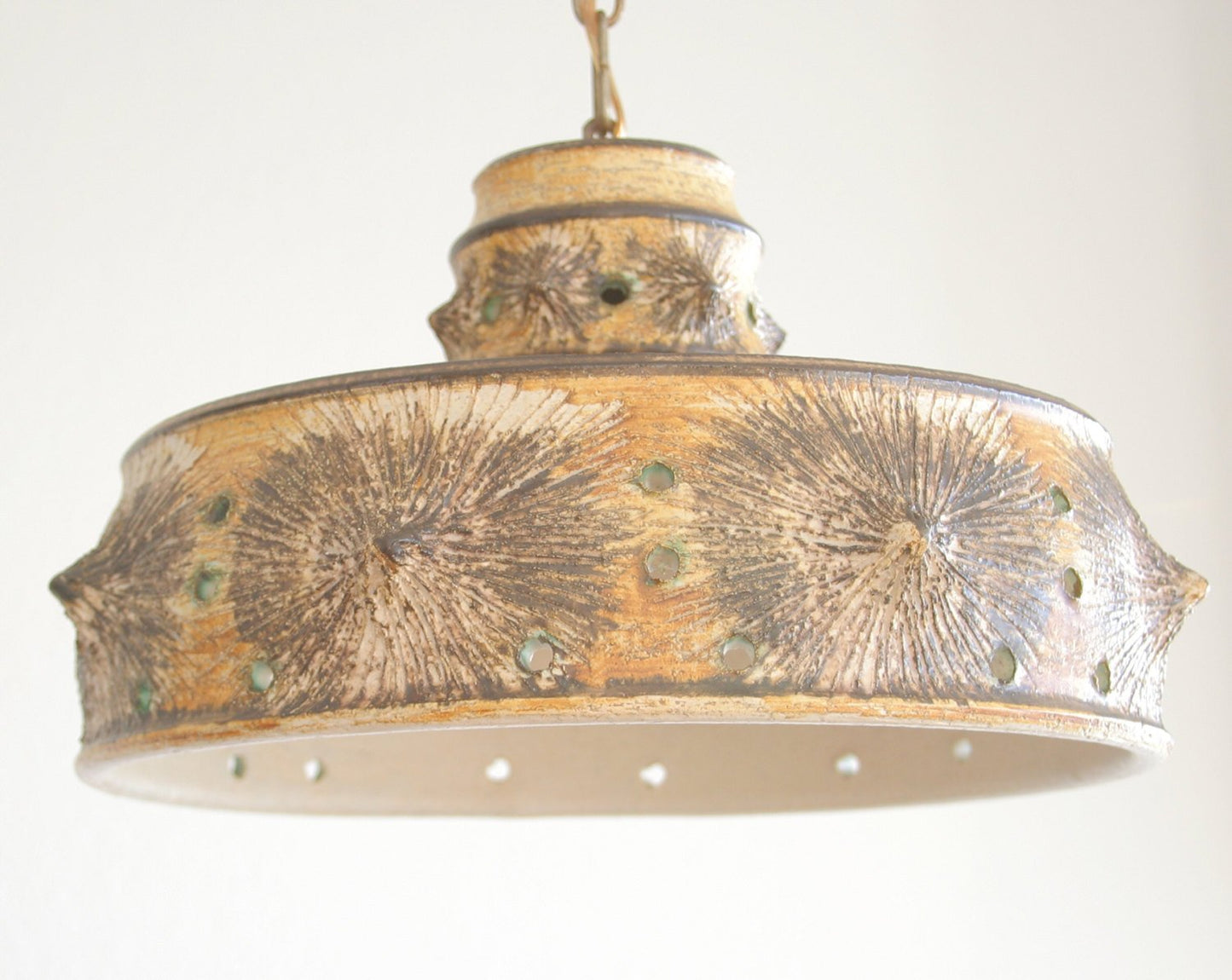 JETTE HELLERØE Large Abstract Decorated Ceramic Pendant Light